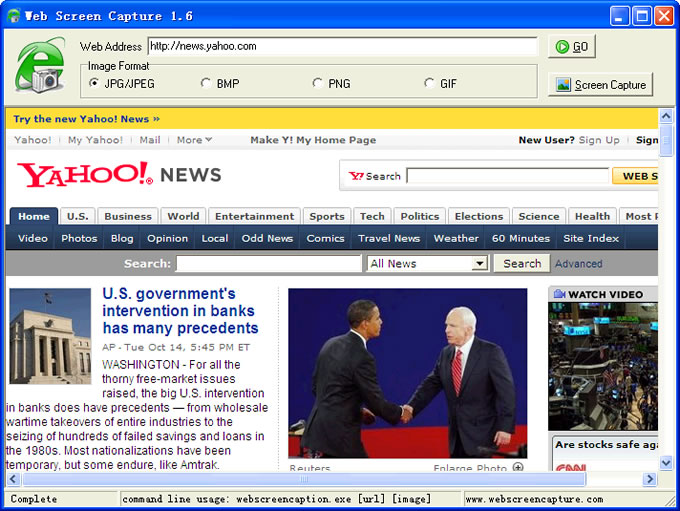 Web Screen Capture does not need to be installed and weighs in at under 1MB in size. This means that it can be used on public computers which don’t allow the installation of external computer programs. As well, Web Screen Capture can automatically batch convert multiple webpages to images or be launched through the command line.