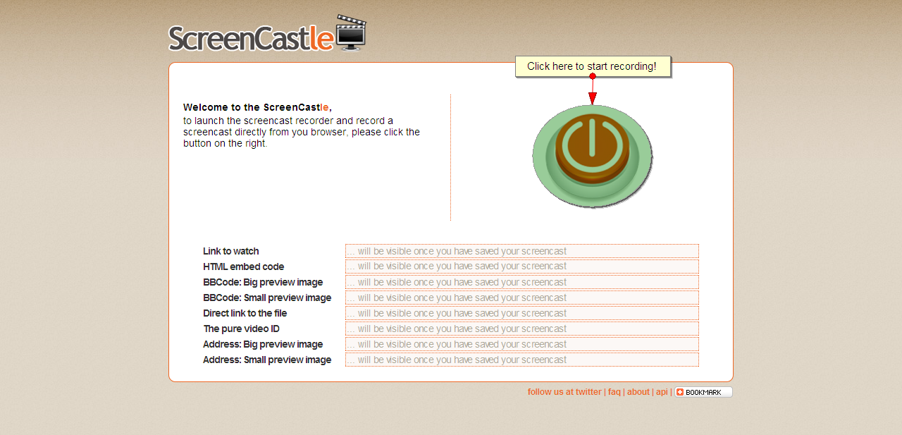 As soon as you open screencastle.com, you will see the huge red button to the right. That is what needs to be clicked in order to begin the screen capture.